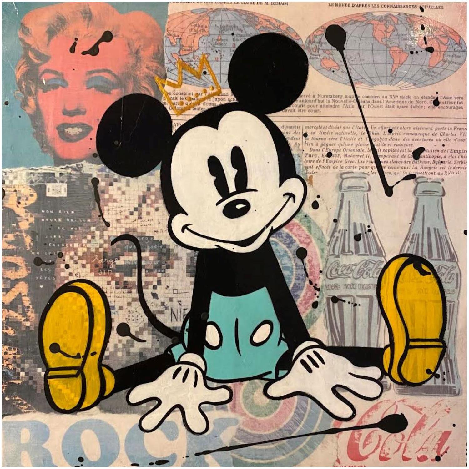 This unique and original contemporary artwork "F3 Mickey assis" on the subject of Pop icons has been created by the contemporary artist Marie G. .