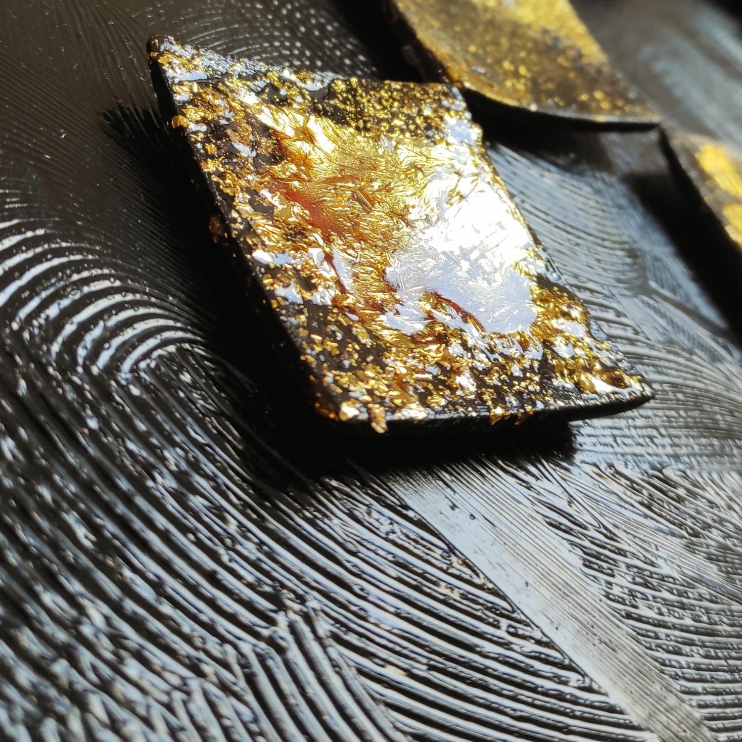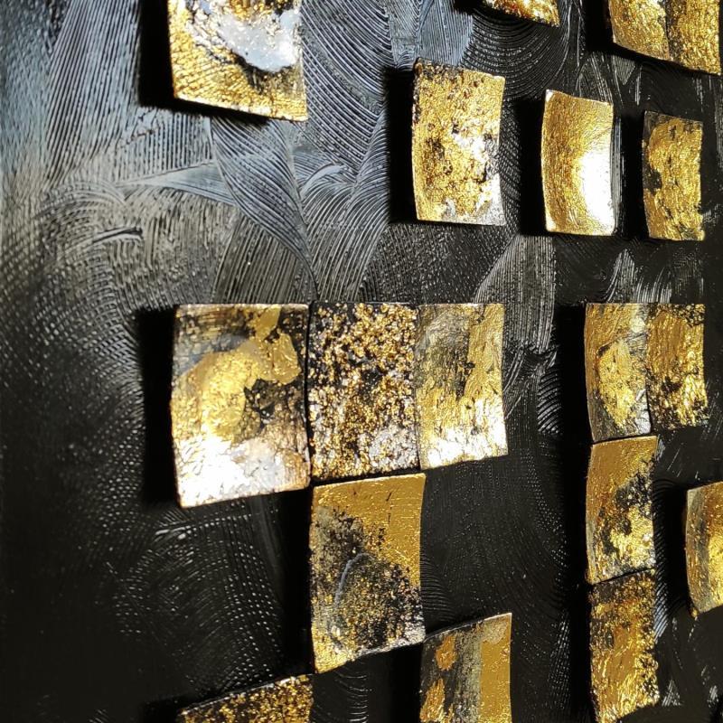 The artist used Acrylic, Wood, Gluing, Lacquer, Metal, Resin media on Dibon to create this Abstract, Large size painting.