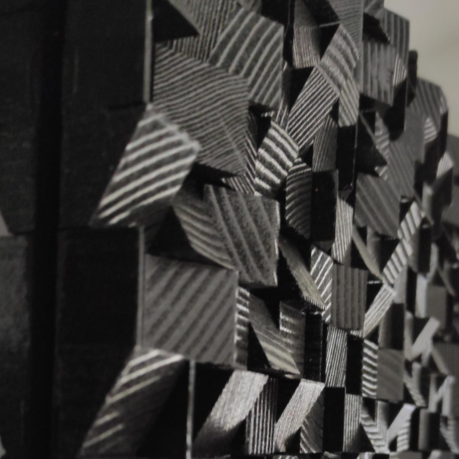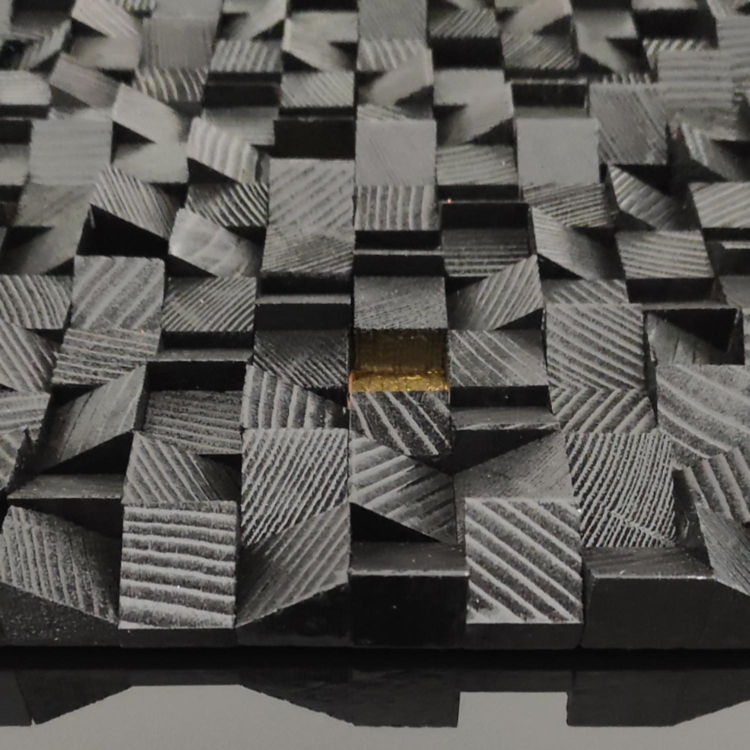 The artist used Acrylic, Wood, Gluing, Metal, Resin media on Metal to create this Abstract, Large size painting.