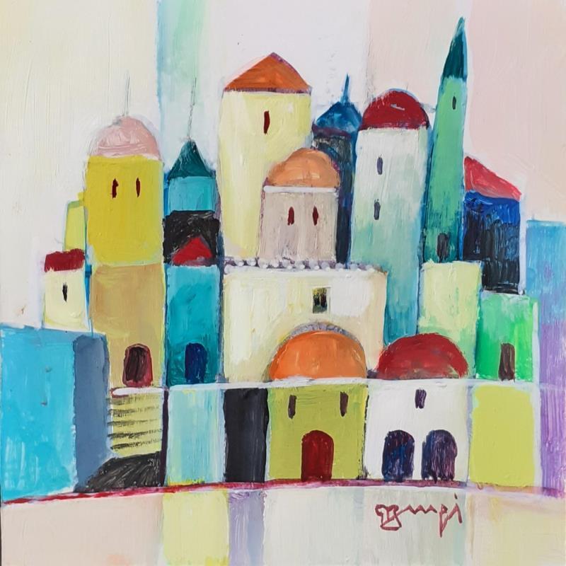 This unique and original contemporary artwork "AQ101 VILLE D'ORIENT" on the subjects of Urban, Architecture, Landscapes has been created by the contemporary artist Burgi Roger.