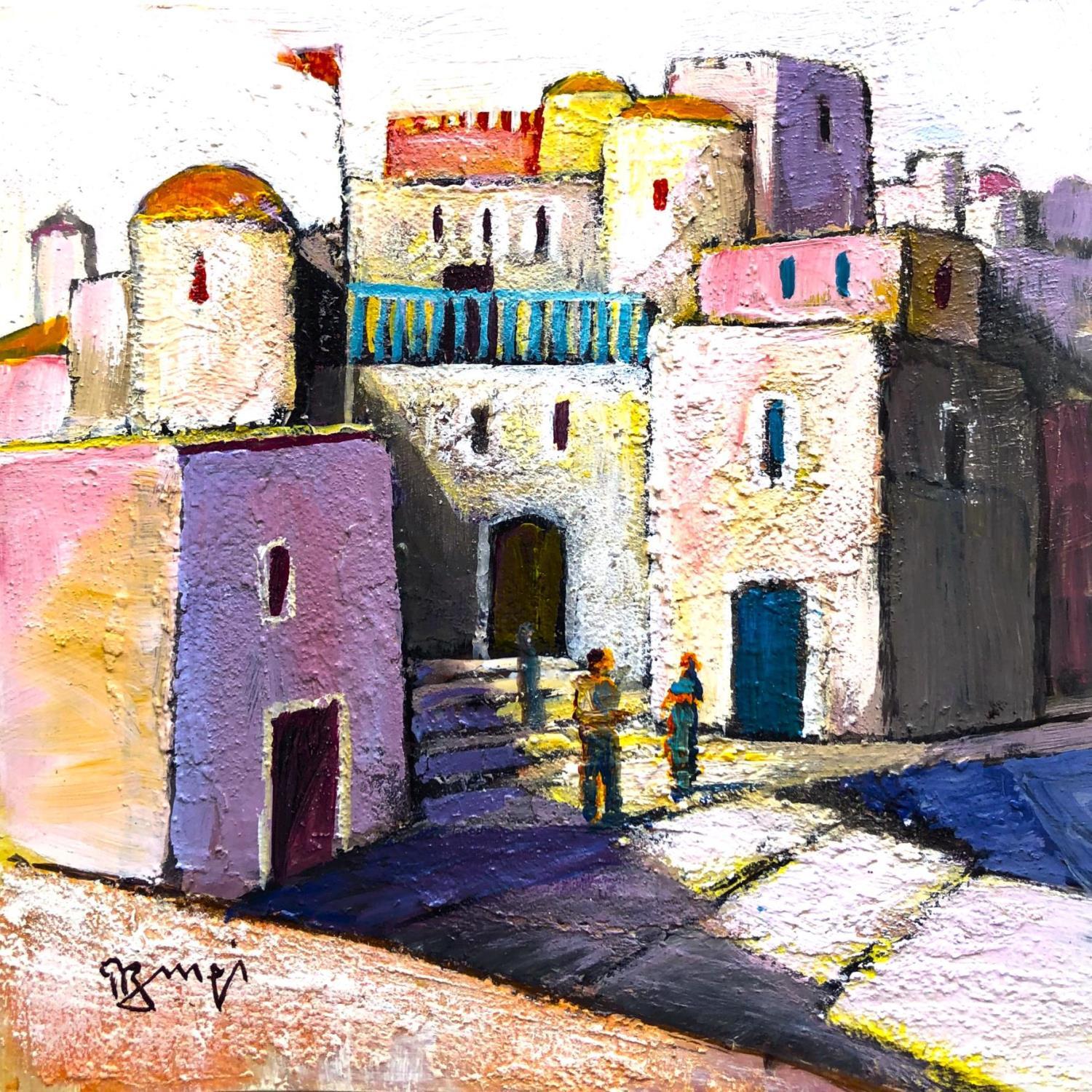 This unique and original contemporary artwork "AK110 VILLAGE FORTIFIE" on the subjects of Architecture, Landscapes, Urban has been created by the contemporary artist Burgi Roger.