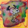 This unique and original contemporary artwork "Snoopy happy" on the subject of Pop icons has been created by the contemporary artist Kikayou.