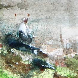 Lecture au bord de la LoirePintura Lecture au bord de la Loire por Gutierrez | Pintura Impressionism Landscapes Watercolor