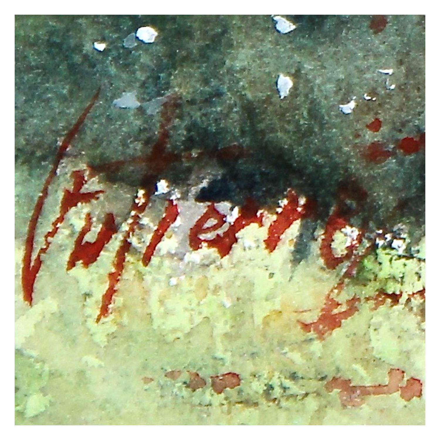 The artist used the Aquarelle technique to create this small-format Impressionist-style painting on the theme of Landscape.