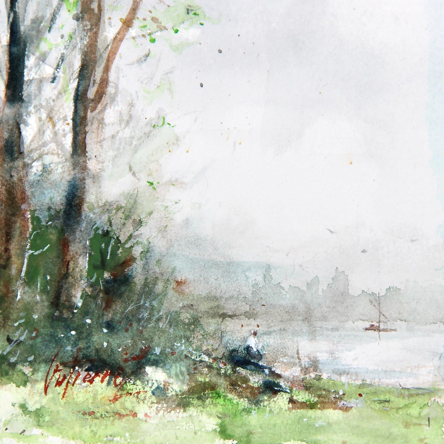 Pintura Lecture au bord de la Loire por Gutierrez | Pintura Impressionism Landscapes Watercolor