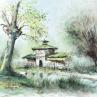 Pintura Le jardin des prébendes por Gutierrez | Pintura Impressionism Landscapes Urban Watercolor