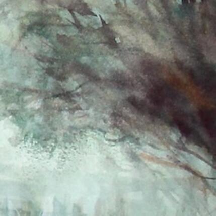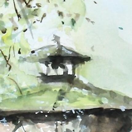 The artist used the watercolor technique to create this small-format Impressionist landscape painting.