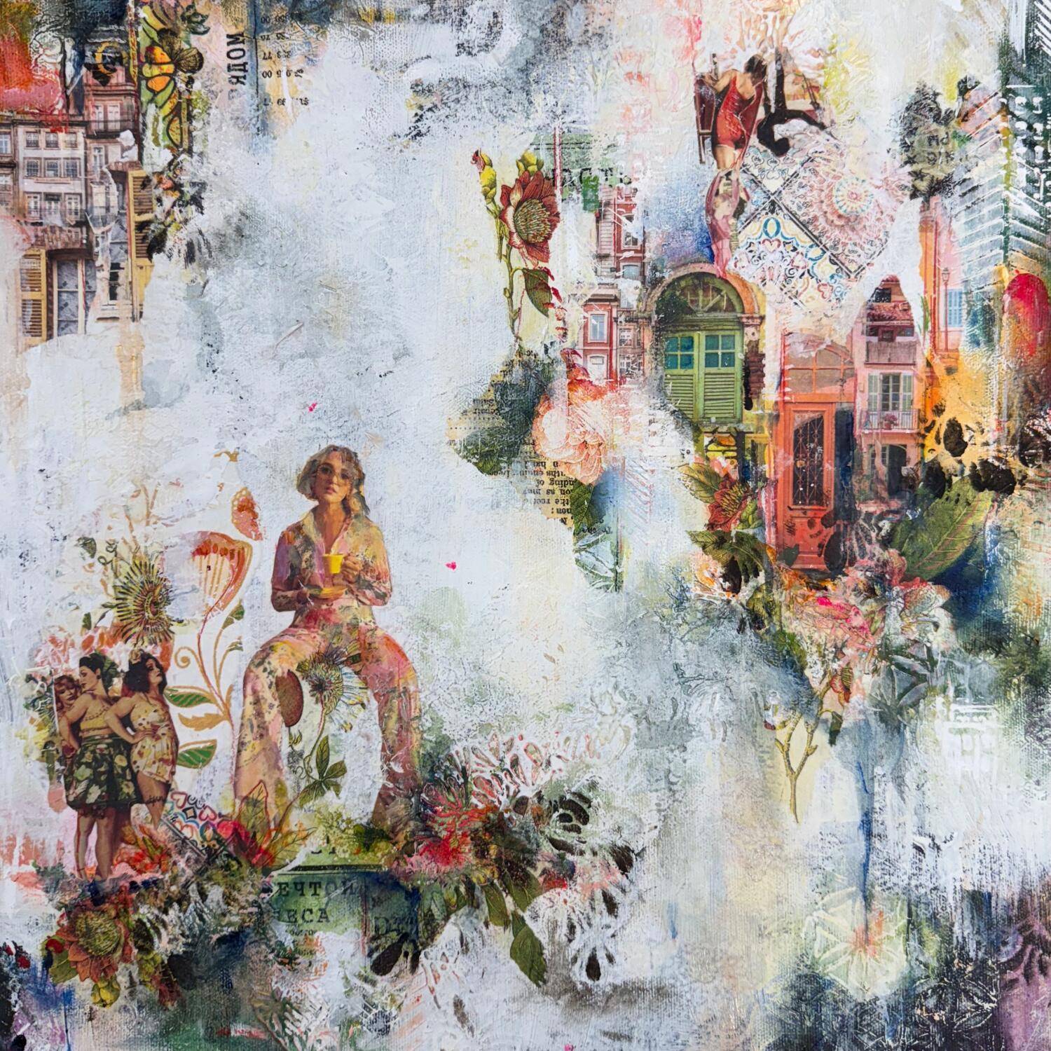 This unique and original contemporary artwork "Les murmures des grandes dames" was created by contemporary artist Bergeron Marie-Josée.
