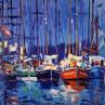 Pintura Escale de nuit dans le port de Vannes por Aliamus Béatrice  | Pintura Figurative Landscapes Marine Sport Oil