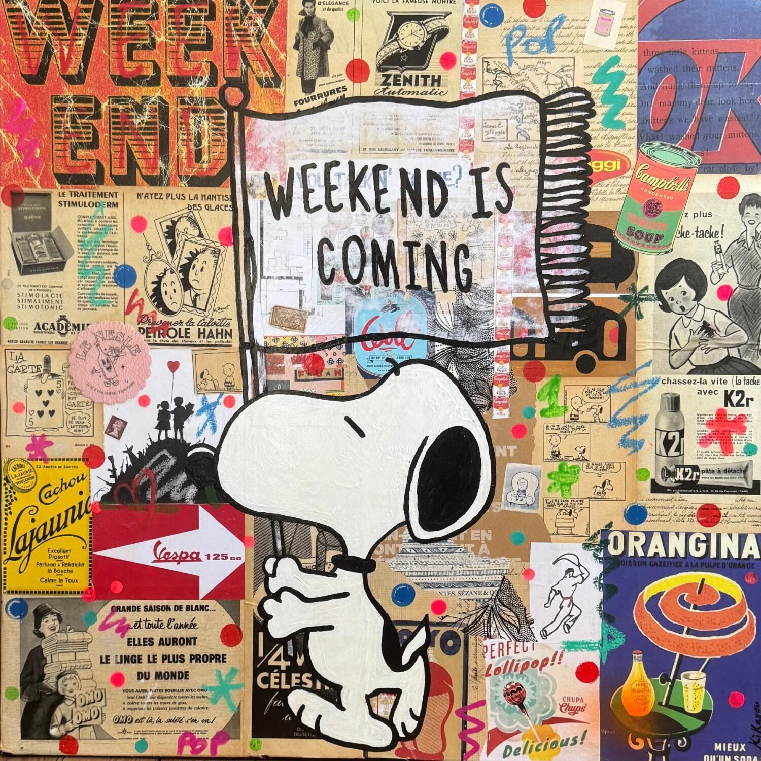 This unique and original contemporary artwork "Week end is comming" on the subject of Pop icons has been created by the contemporary artist Kikayou.