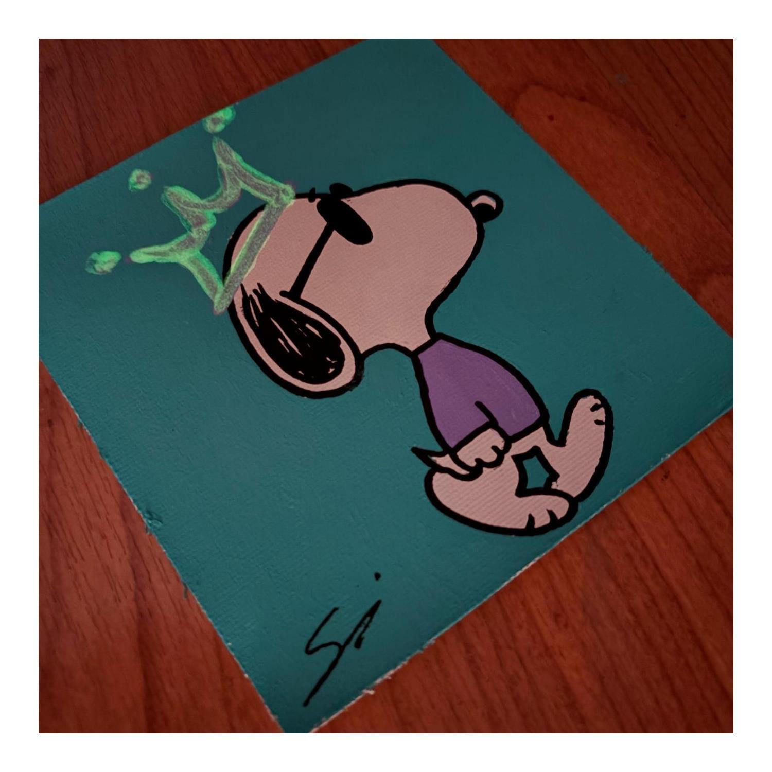 This unique and original contemporary artwork "SNOOPY THE FLUOR KING" on the subject of Pop icons has been created by the contemporary artist Mestres Sergi.