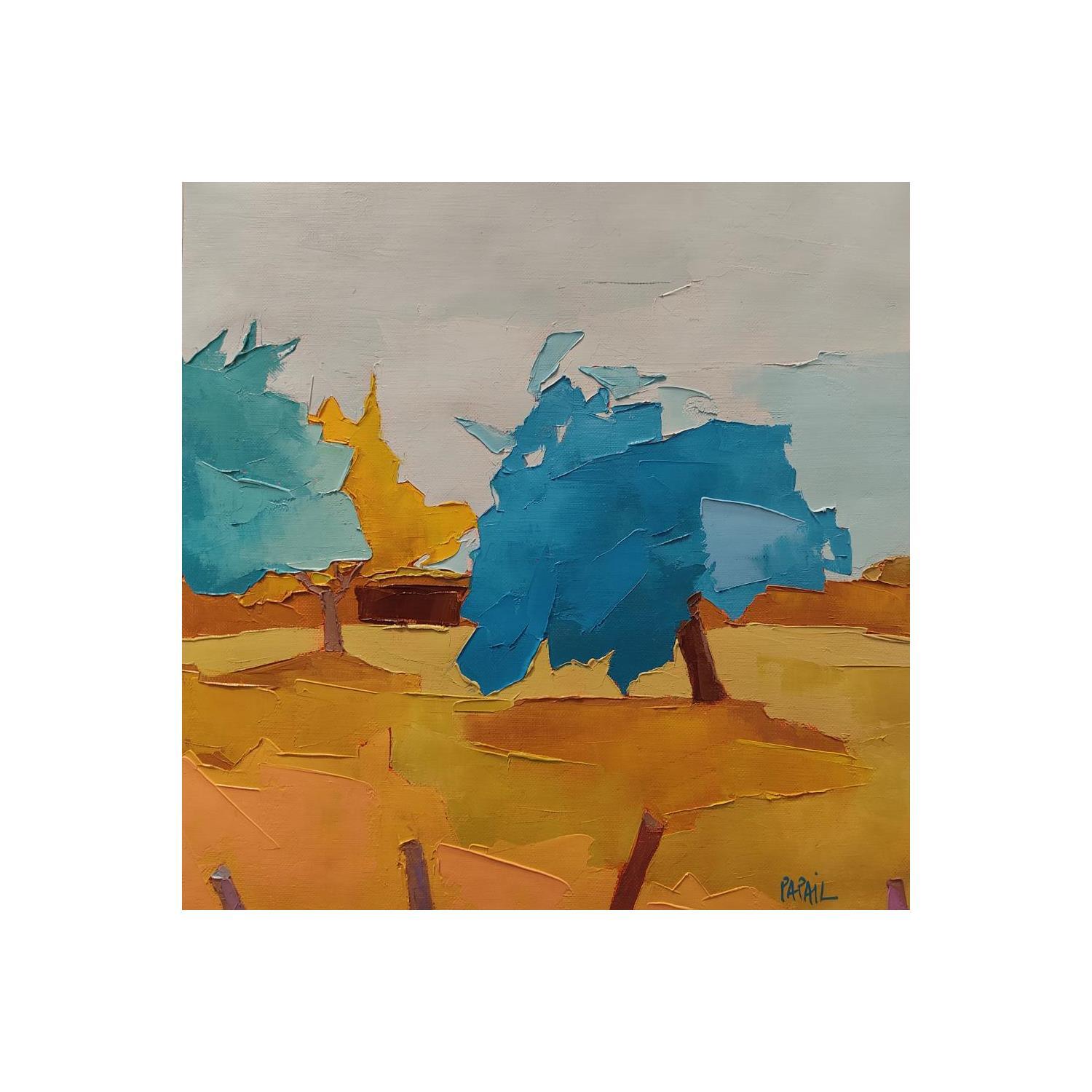 This unique and original contemporary artwork "Trois pommiers dans un pré" on the subject of Landscapes has been created by the contemporary artist PAPAIL.