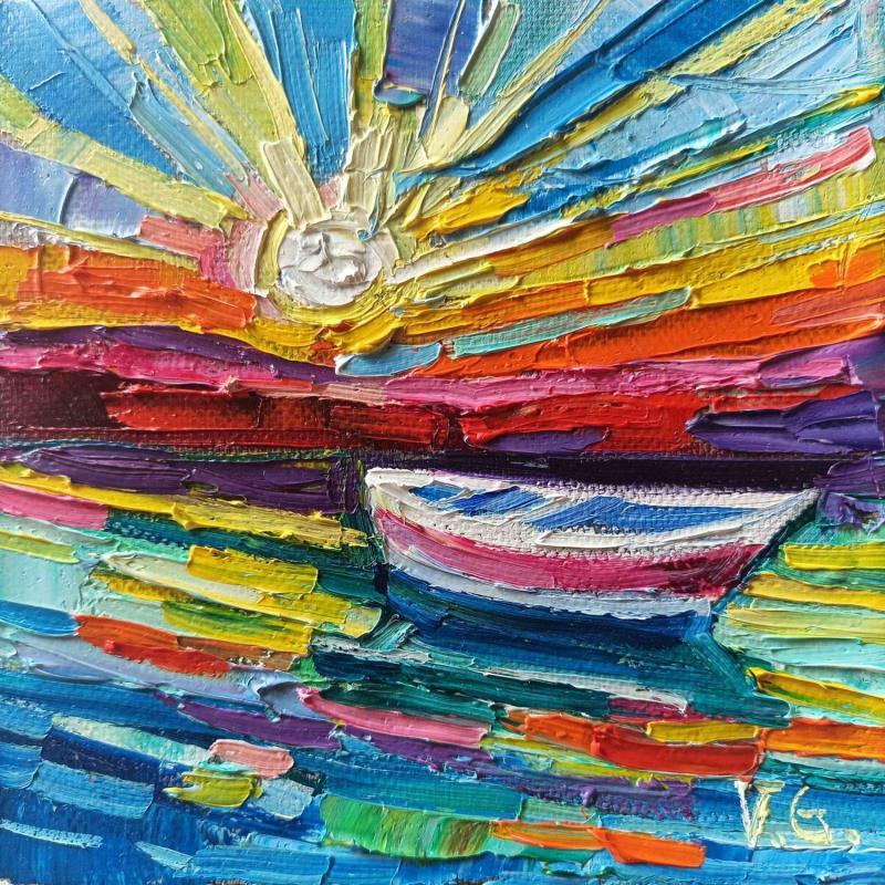 This unique and original contemporary artwork "Boat at sunset " on the subject of Landscapes has been created by the contemporary artist Georgieva Vanya.