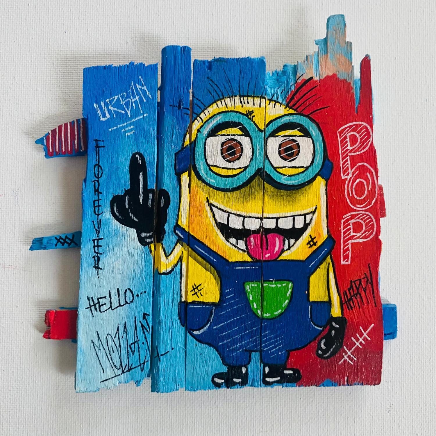 The artist used Acrylic, Wood, Posca media on Wood to create this Pop-art, Small size painting.