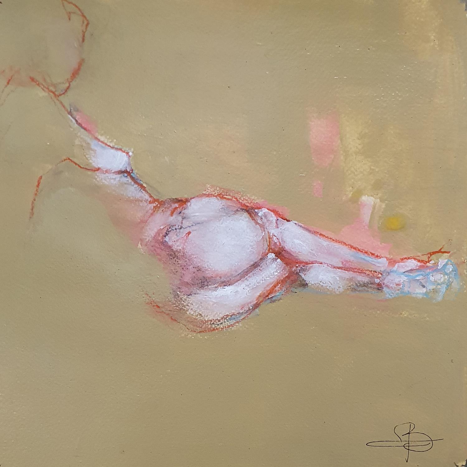 In this work, the figure seems to float between materiality and abstraction, capturing a moment of abandon and grace. Delicate touches of acrylic play with light and transparency, evoking both the fragility and strength of a body in motion. The soft palette, punctuated by warm, subtle nuances, suggests an intimate, almost dreamlike atmosphere. A suspended moment, where the body becomes a landscape of curves and emotions.