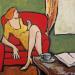 Roman et caféPintura Roman et café por Signamarcheix Bernard | Pintura Naive art Acrylic Ink Pastel
