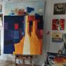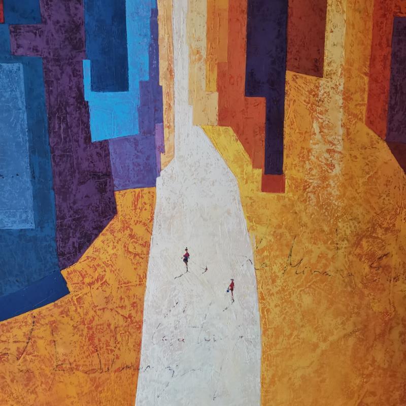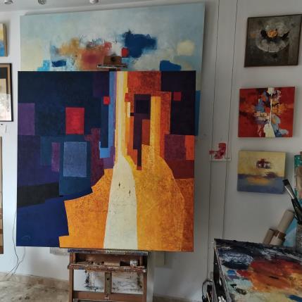 The artist used Oil medium on Canvas to create this Abstract, Large size painting.