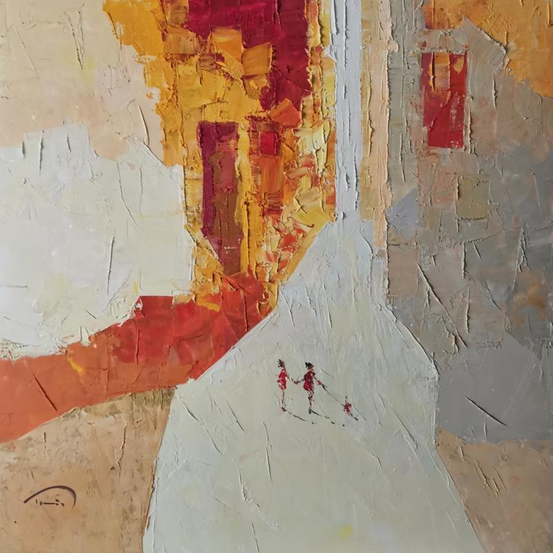 This unique and original contemporary artwork "La couple mystérieux" on the subjects of Life style, Urban has been created by the contemporary artist Tomàs.