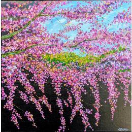 This unique and original contemporary artwork "Petites fleurs de cerisier pleureur" on the subject of Nature has been created by the contemporary artist Amblard Florence.