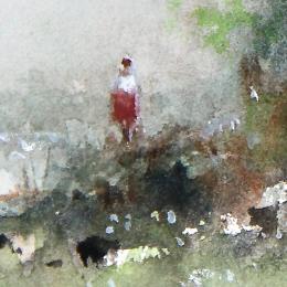 The artist used the watercolor technique to create this small-format Impressionist-style painting on the theme of Landscapes.