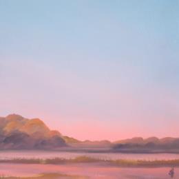 This unique and original contemporary artwork "SUNRISE OVER WILD LANDSCAPE" on the subject of Landscapes has been created by the contemporary artist Svenja Herz.