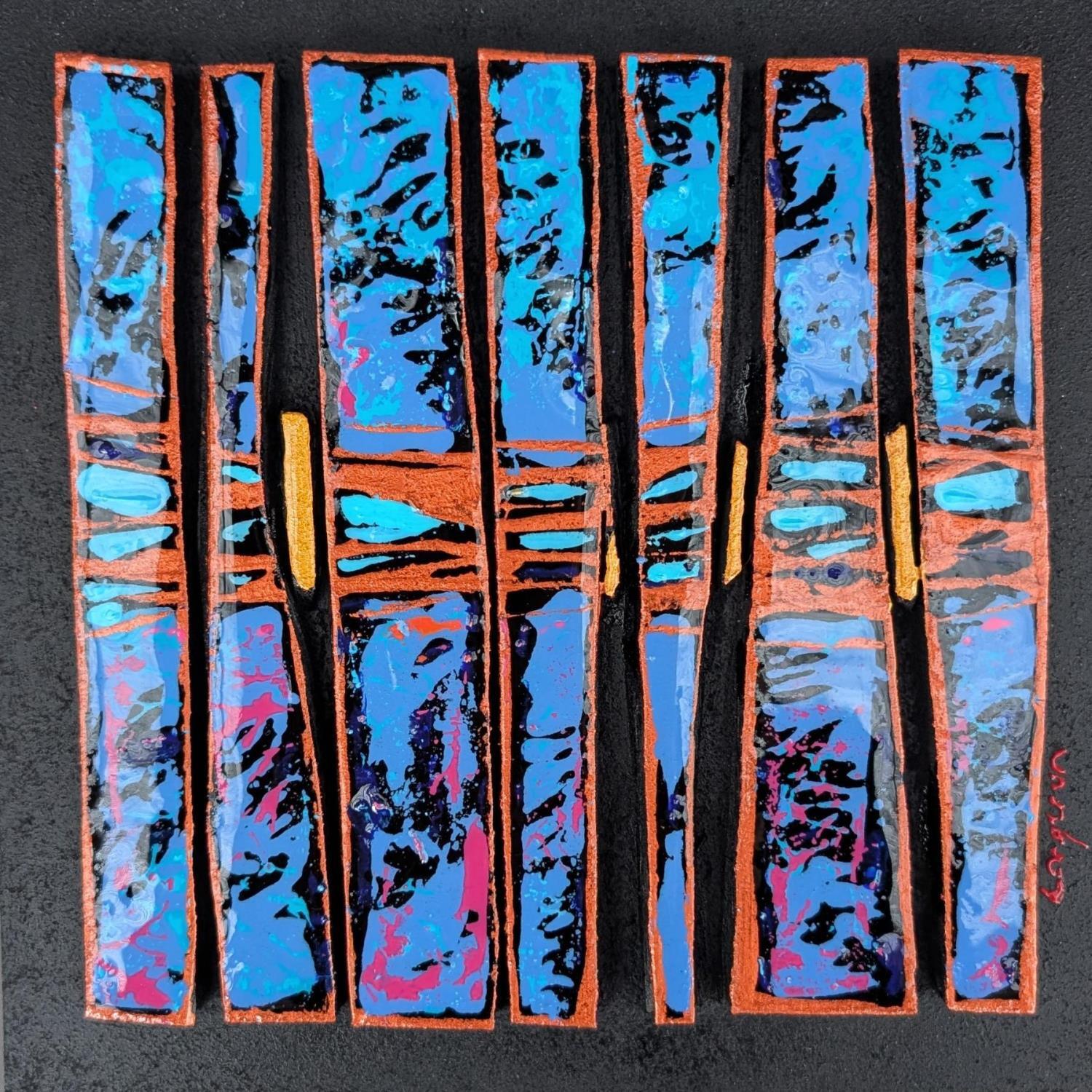 The artist used Acrylic, Wood, Resin media on Wood to create this Subject matter, Small size painting.
