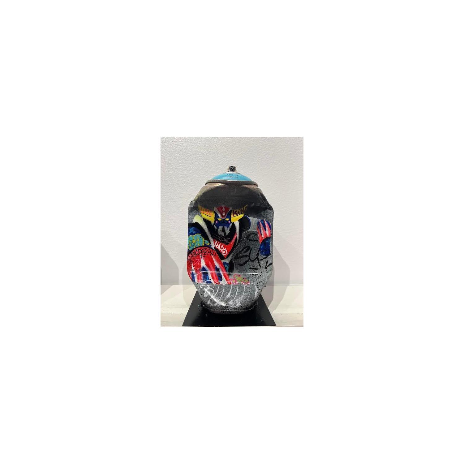 This unique and original contemporary artwork "Goldorak Fulguro" on the subject of Pop icons has been created by the contemporary artist Kedarone.