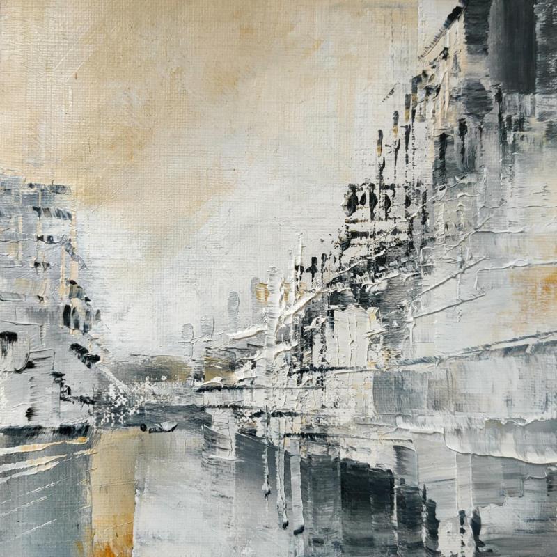 This unique and original contemporary artwork "Canal Saint-Martin" has been created by the contemporary artist Levesque Emmanuelle.