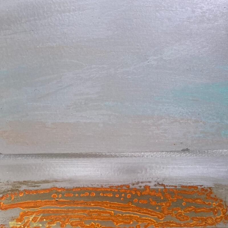 The artist used the technique of oxidation on sheet steel to create this small-format Figurative-style painting on Metal on the theme of Landscapes.