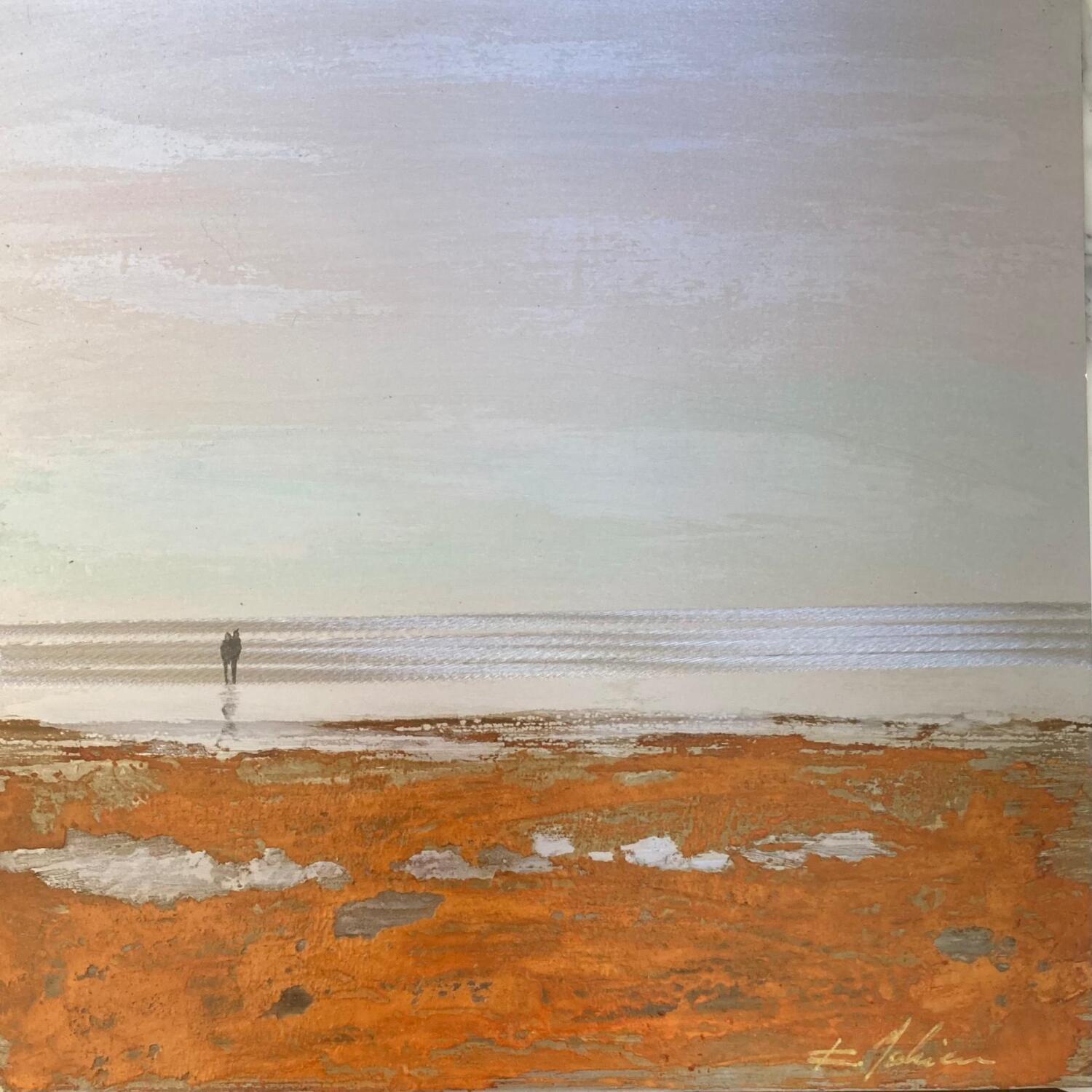 Pintura Couple plage des 3 digues  por Mahieu Bertrand | Pintura Figurative Landscapes Metal