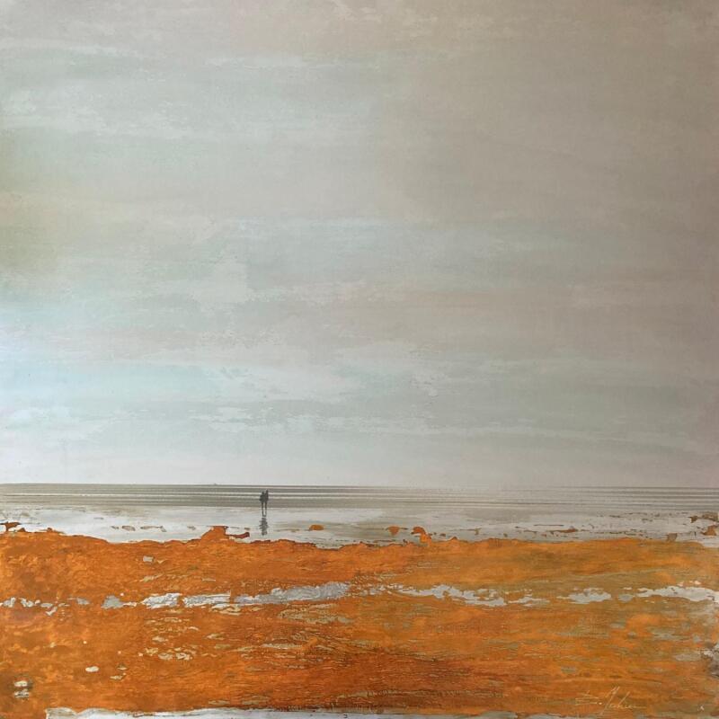 The artist used the technique of oxidation on sheet steel to create this small-format Figurative-style painting on Metal on the theme of Landscapes.