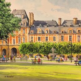 This unique and original contemporary artwork "La place des Vosges" on the subject of Urban has been created by the contemporary artist Decoudun Jean charles.