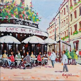 This unique and original contemporary artwork "MATINEE AU CAFE DE FLORE" on the subjects of Society, Urban, Life style has been created by the contemporary artist Euger.