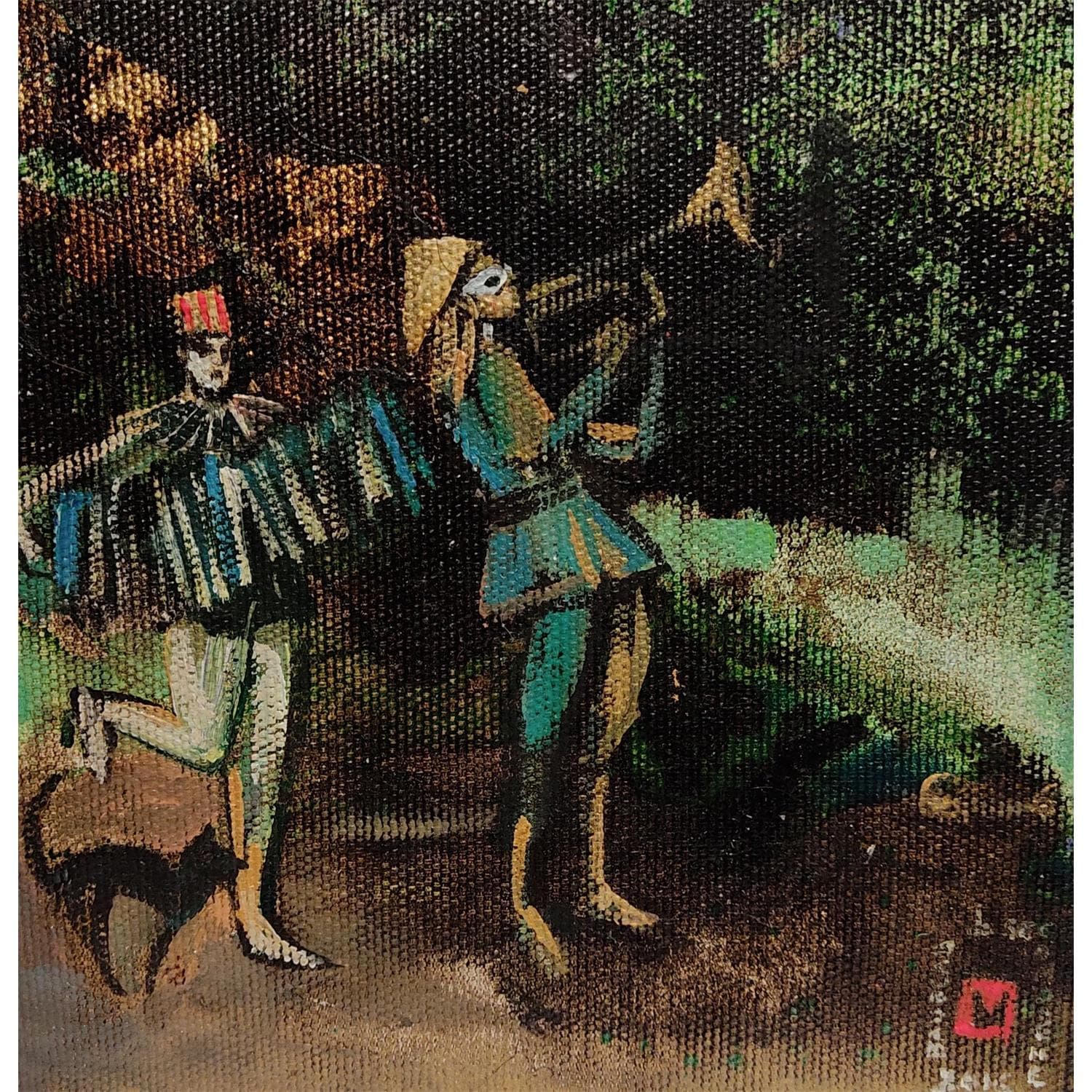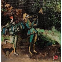 The artist used Oil, Acrylic media on Canvas to create this Figurative, Small size painting.
