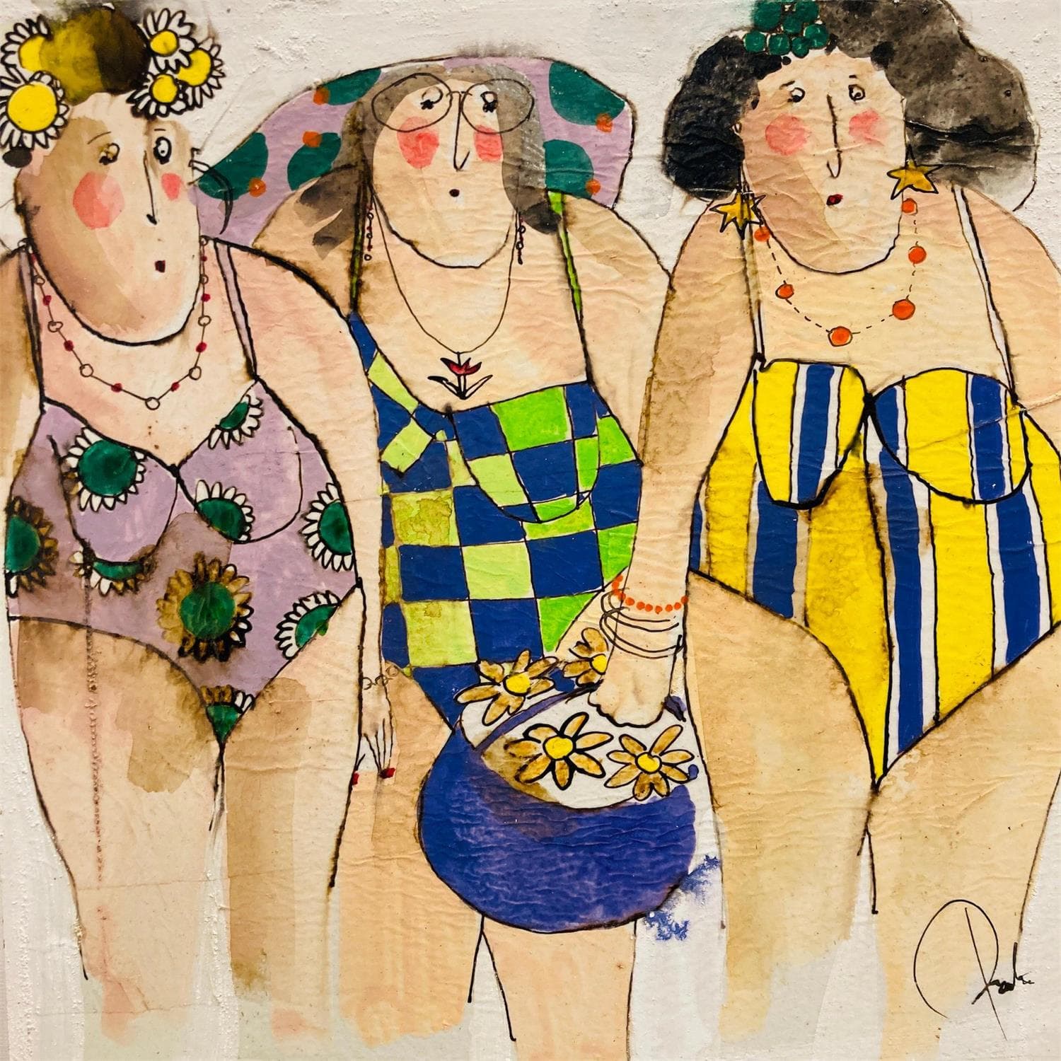 This unique and original contemporary artwork "Marguerite, Joelle et France" on the subject of Life style has been created by the contemporary artist Colombo Cécile.