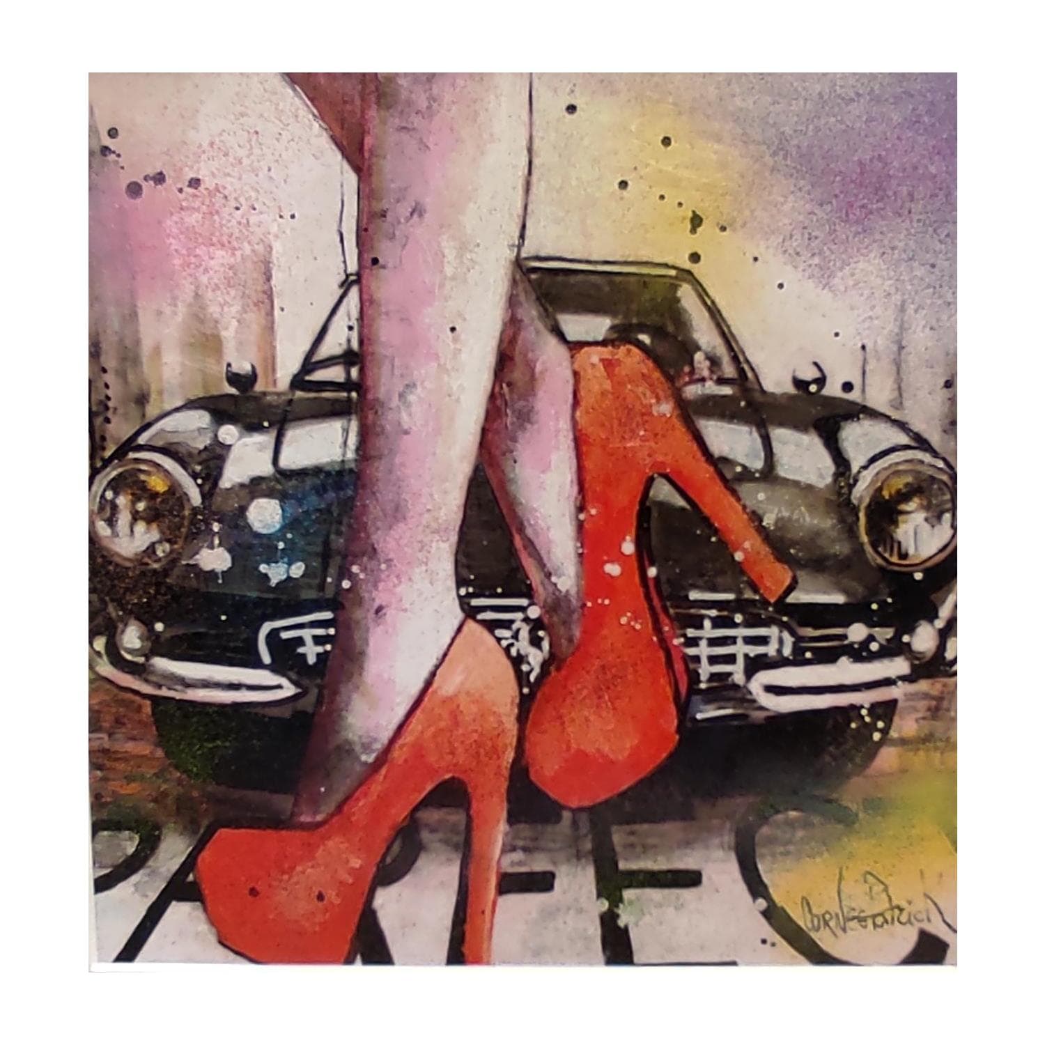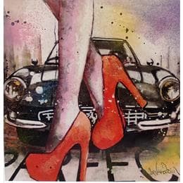 This unique and original contemporary artwork "Woman with an old Ferrari" has been created by the contemporary artist Cornée Patrick.