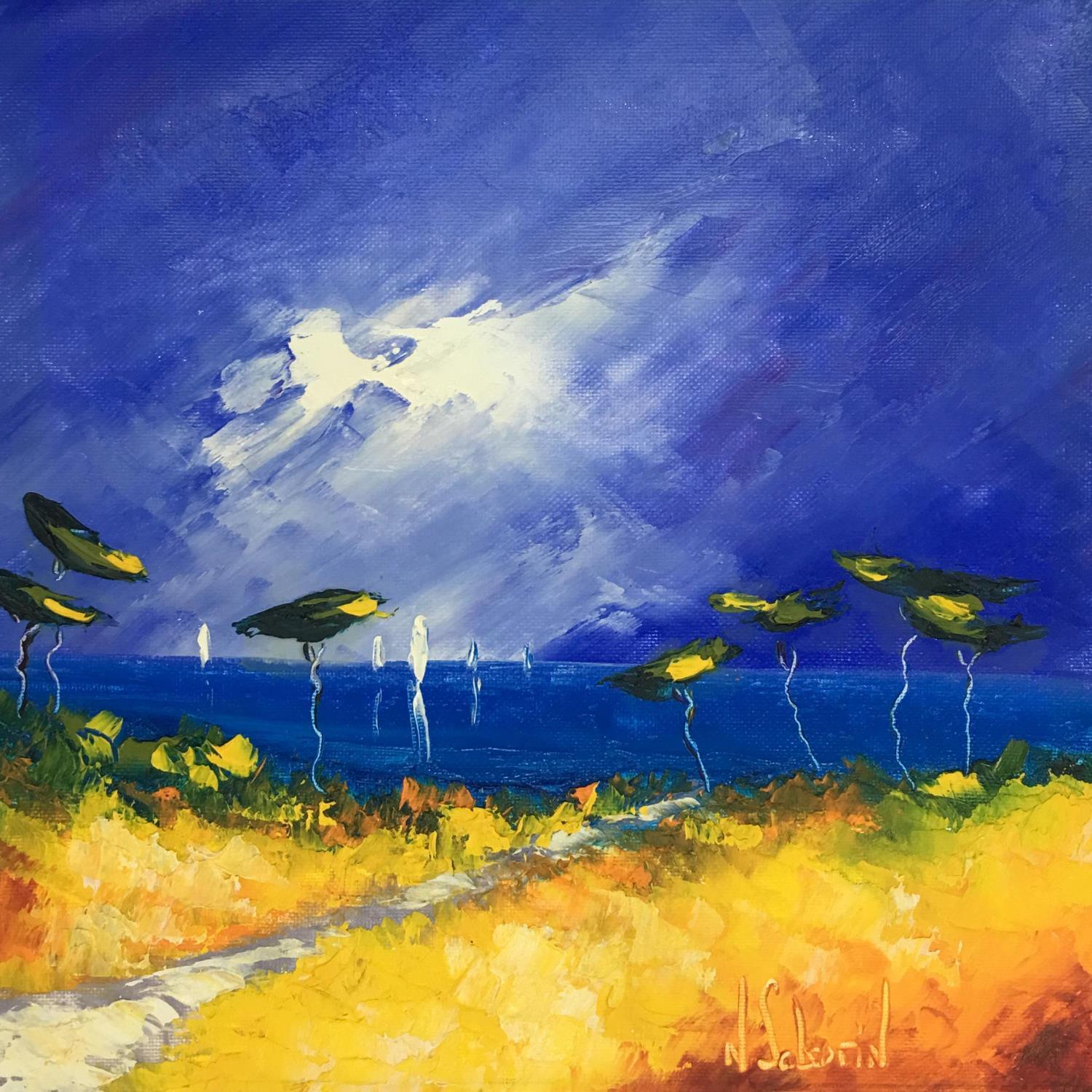 This unique and original contemporary artwork "LA DANSE DES PINS" on the subject of Landscapes has been created by the contemporary artist Sabourin Nathalie.