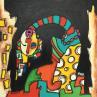 Karla Gorigoitia is a Chilean artist. Thanks to her studies in Plastic and Dramatic Arts, she fuses these fields and uses theatrical techniques to give life to different characters, diverting them and creating masks. Interested in color, matter and paper tearing, the artist combines acrylic, collage and writing in her pictorial compositions. Each of her canvases can be seen as a play, with the text hidden behind the colors. She has exhibited in Europe, the United States, Latin America and China.