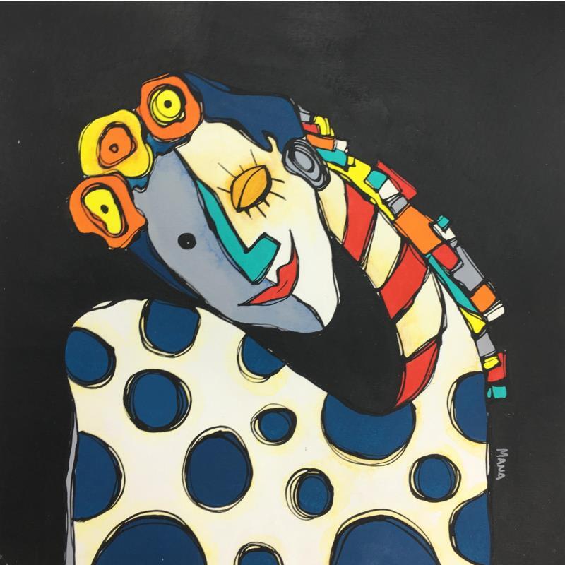 Karla Gorigoitia is a Chilean artist. Thanks to her studies in Plastic and Dramatic Arts, she fuses these fields and uses theatrical techniques to give life to different characters, diverting them and creating masks. Interested in color, matter and paper tearing, the artist combines acrylic, collage and writing in her pictorial compositions. Each of her canvases can be seen as a play, with the text hidden behind the colors. She has exhibited in Europe, the United States, Latin America and China.