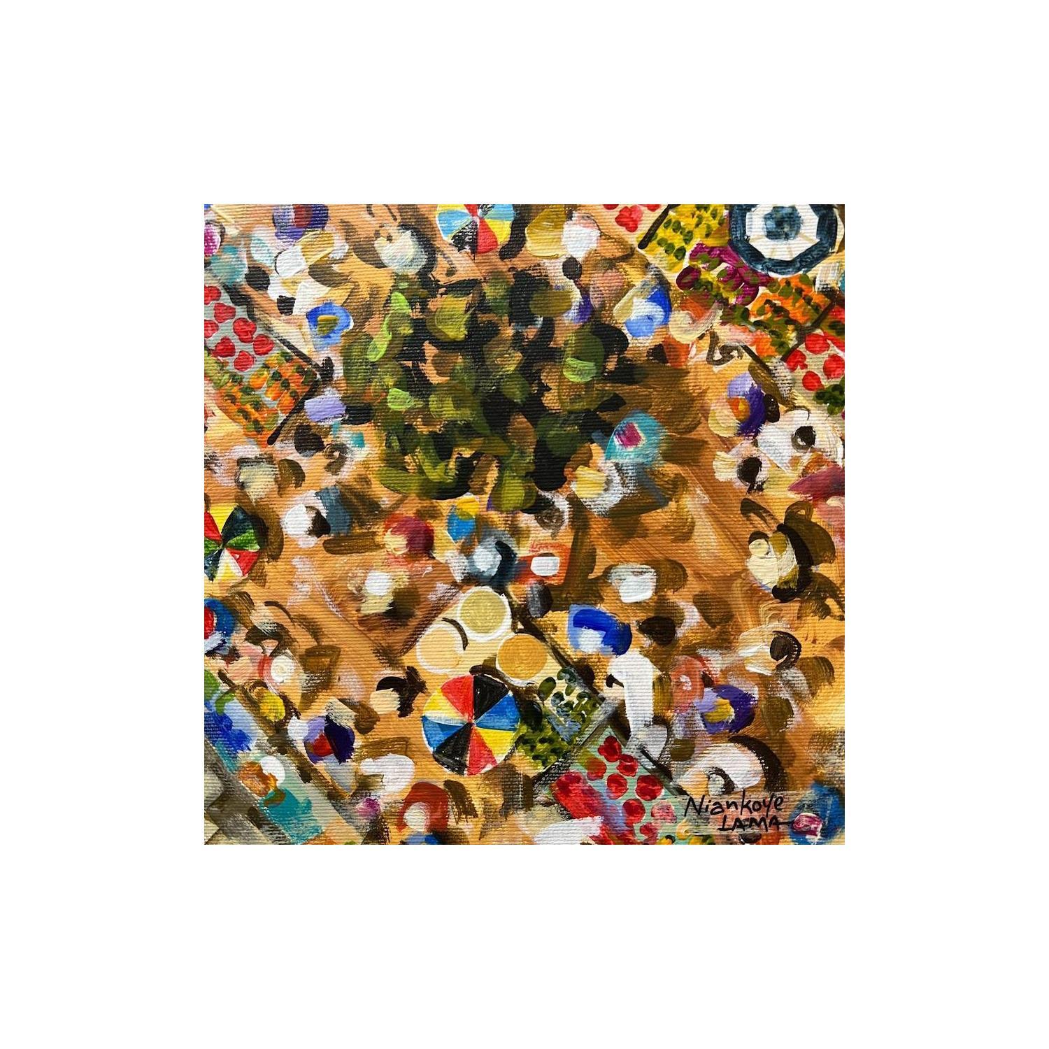 This unique and original contemporary artwork "La Place de marche" on the subject of Life style has been created by the contemporary artist Lama Niankoye.