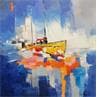 This unique and original contemporary artwork "Retour de pêche" on the subject of Marine has been created by the contemporary artist Menant Alain.