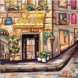 This unique and original contemporary artwork "La petite boutique" on the subject of Urban has been created by the contemporary artist Aud C.