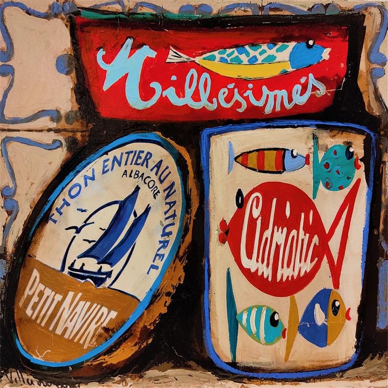 This unique and original contemporary artwork "latas 4" on the subject of still-life has been created by the contemporary artist Villanueva Puigdelliura Natalia.