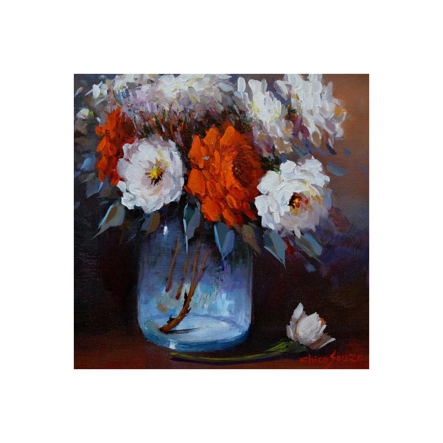 Pintura White rose por Chico Souza | Pintura Figurative Still-life Oil