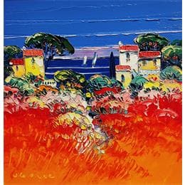This unique and original contemporary artwork "L'amour en méditarranée" on the subjects of Landscapes, Marine has been created by the contemporary artist Corbière Liisa.