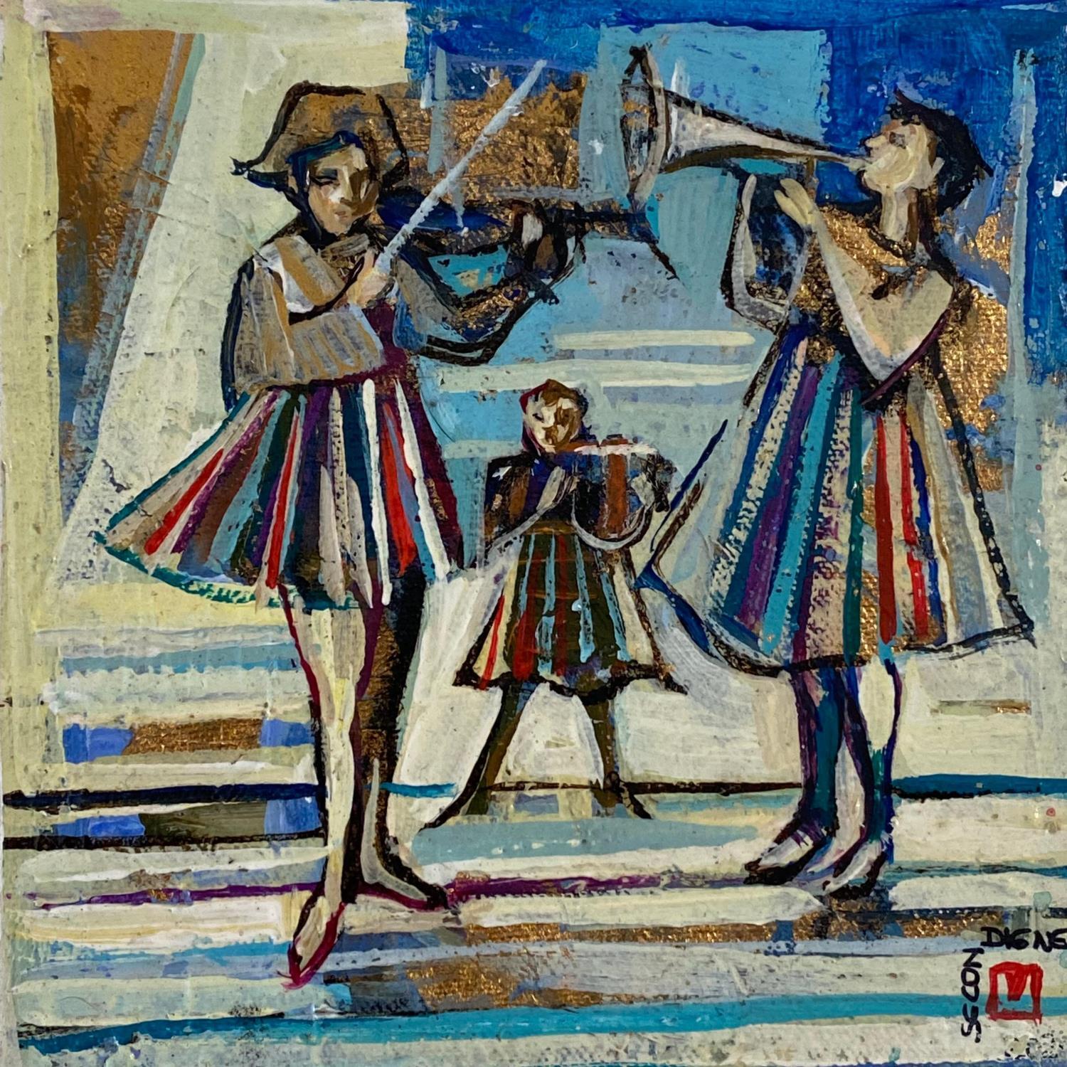The artist used Acrylic, Oil media on Canvas to create this Figurative, Small size painting.