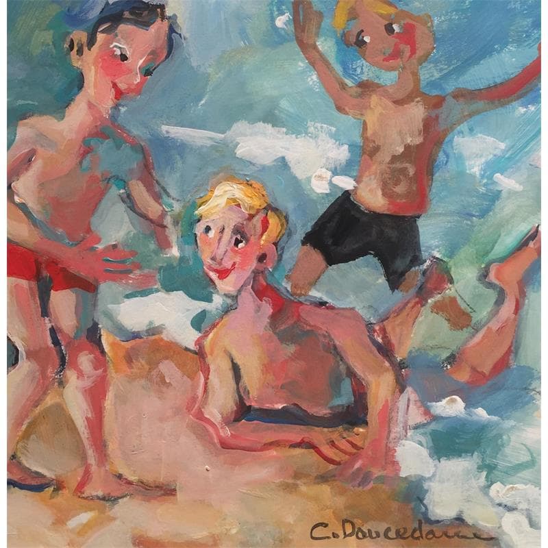 This unique and original contemporary artwork "A l'eau les copains" on the subject of Life style has been created by the contemporary artist Doucedame Christine.