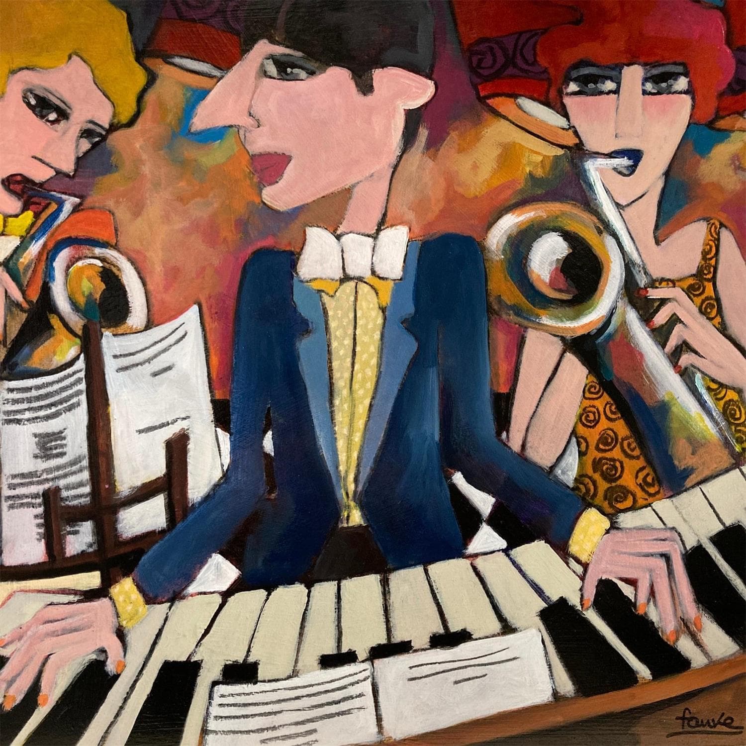 This unique and original contemporary artwork "Pianiste à l'honneur" on the subjects of Portrait, Life style has been created by the contemporary artist Fauve.