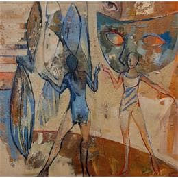 The artist used Oil, Acrylic media on Canvas to create this Figurative, Small size painting.