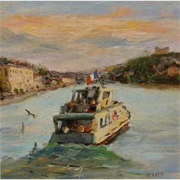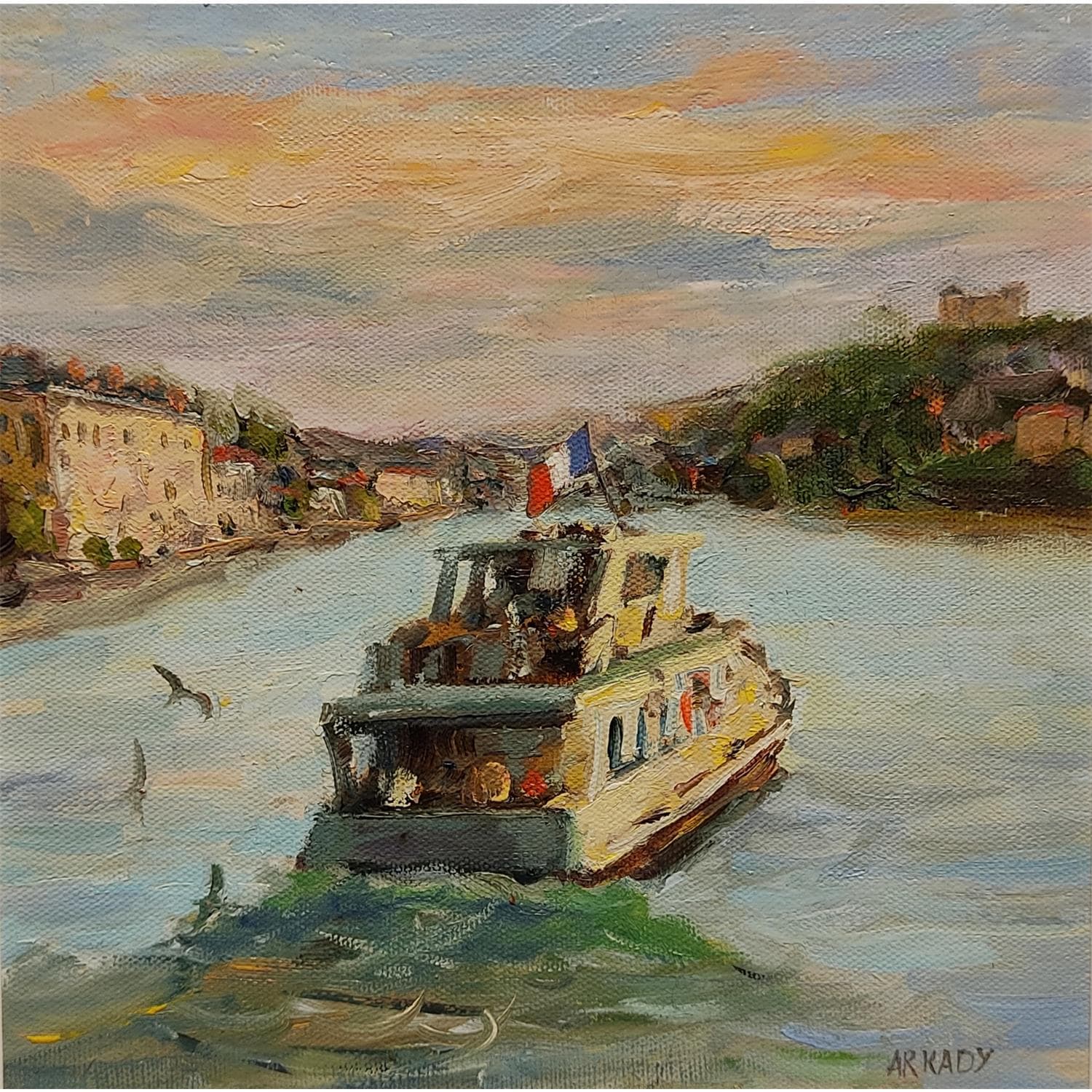 This unique and original contemporary artwork "La promenade en bateau" on the subject of Urban has been created by the contemporary artist Arkady.